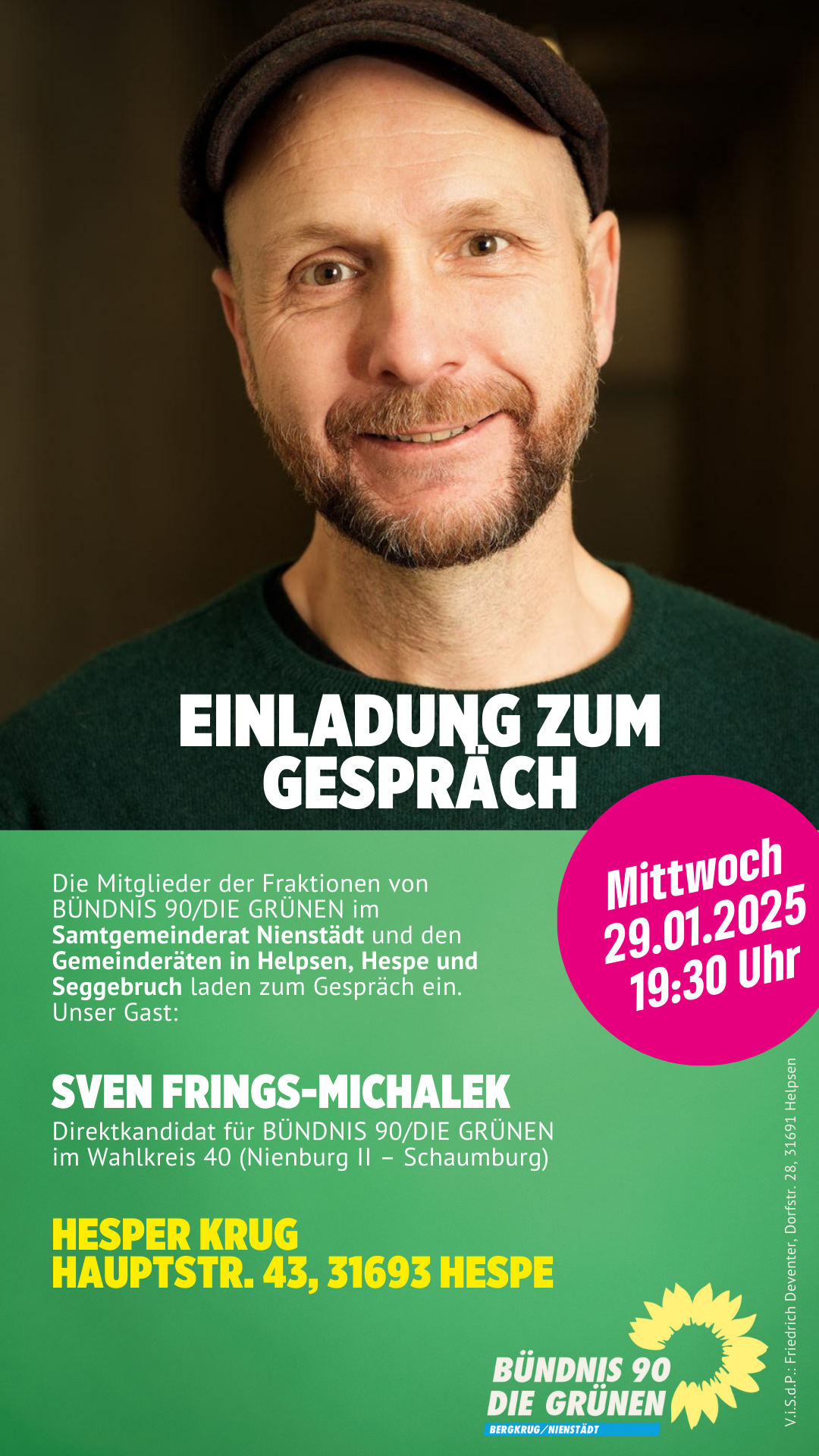Unser Gast ist Sven Frings-Michalek, Direktkandidat für BÜNDNIS 90/DIE GRÜNEN im Wahlkreis 40 (Nienburg/Schaumburg).